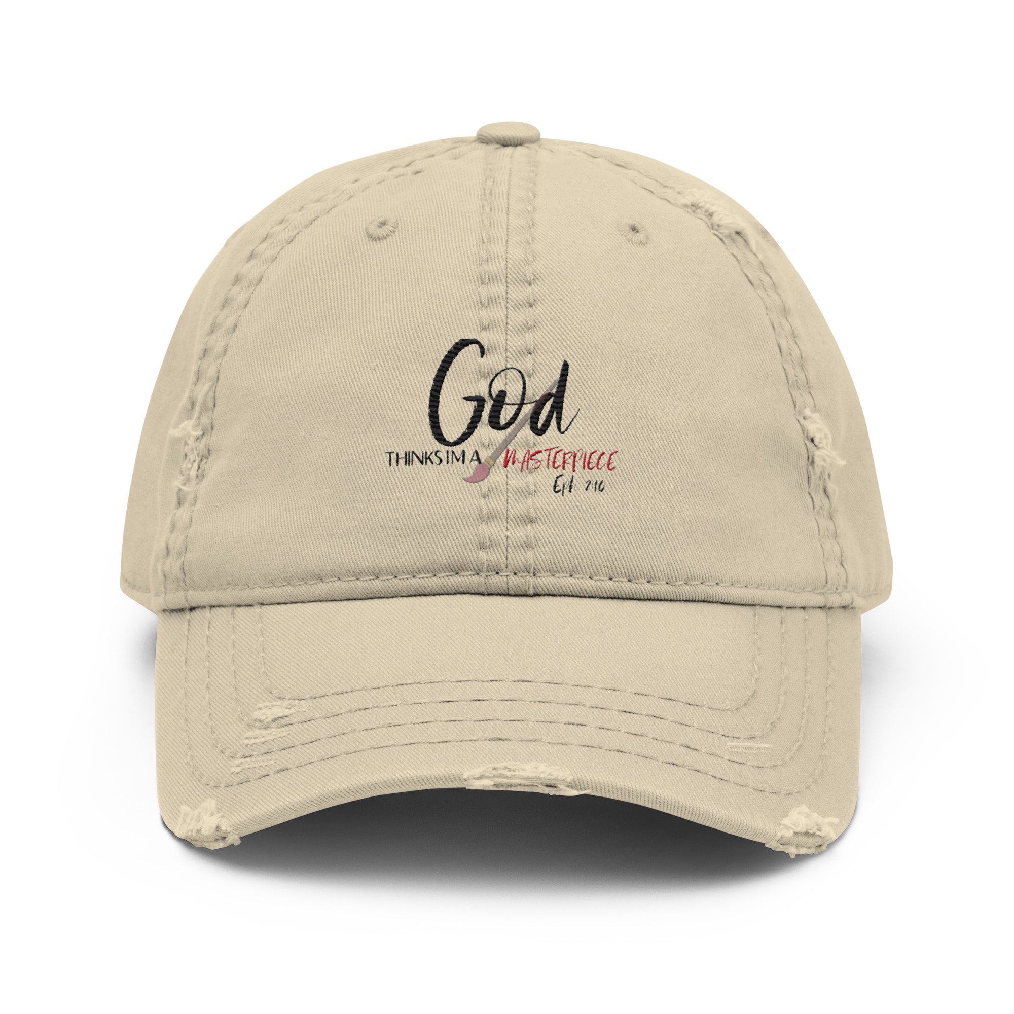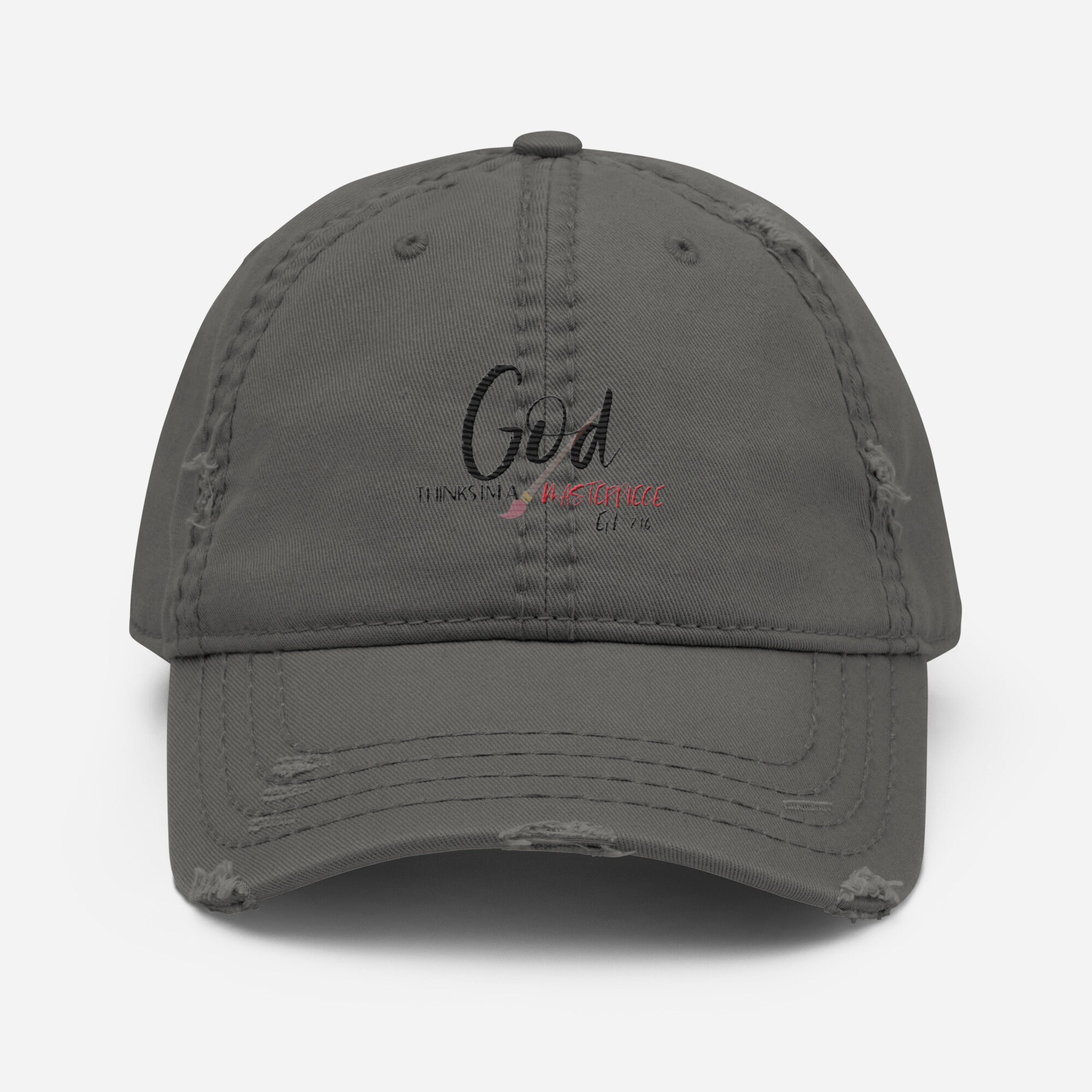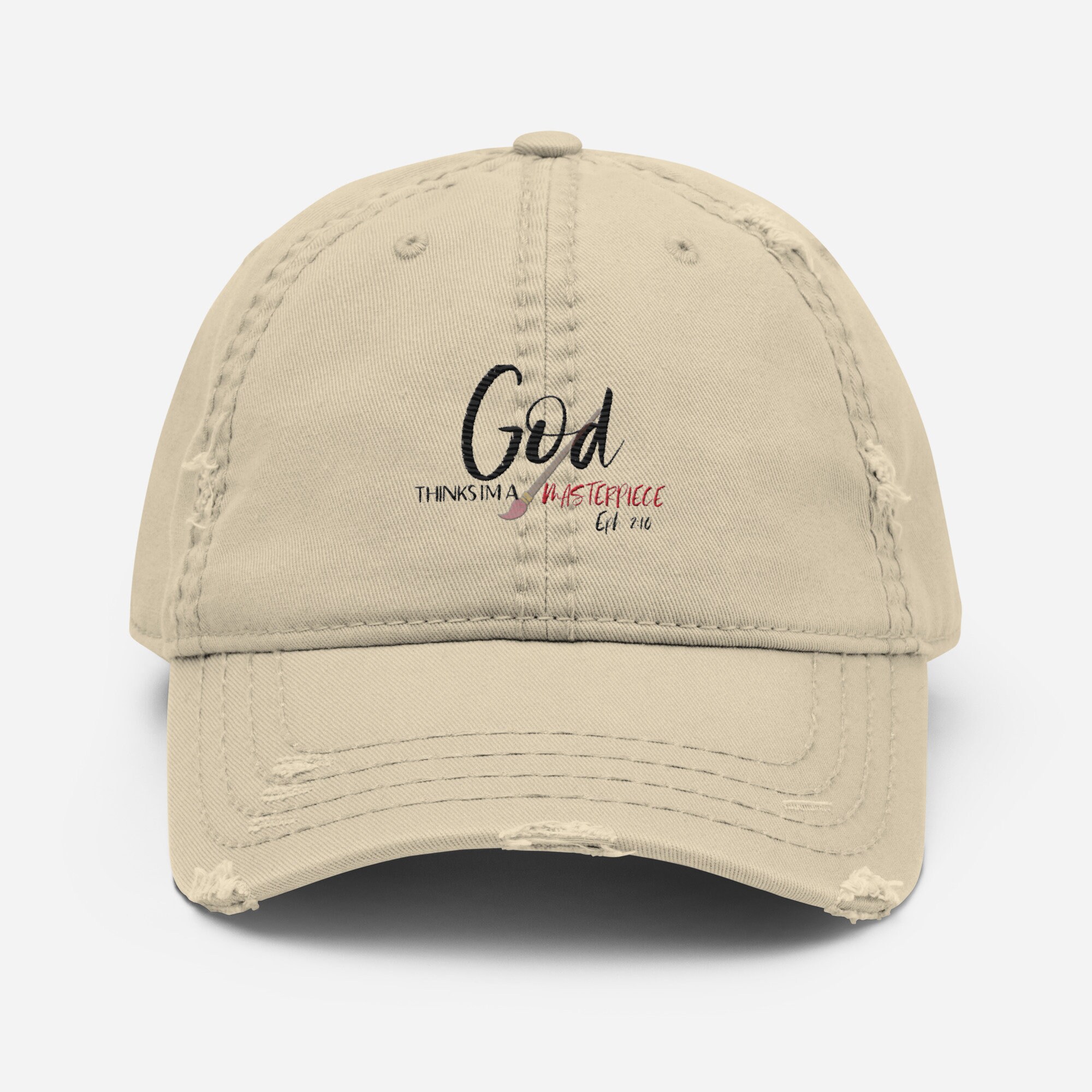 Introducing our fabulous God thinks I'm a masterpiece Dad Hat, the perfect accessory to express your faith with pride! This trendy hat is not only stylish but also carries a powerful message. With bold embroidery that reads Where's your faith? Wear your faith!, this Dad Hat serves as a reminder to always stay strong in your beliefs. Crafted with top-notch quality materials, this hat guarantees durability and comfort. Whether you're going for a casual look or want to make a statement, our Dad Hat is sure to add a touch of faith and style to any outfit. So why wait? Show the world you are a true masterpiece and let your hat do the talking!