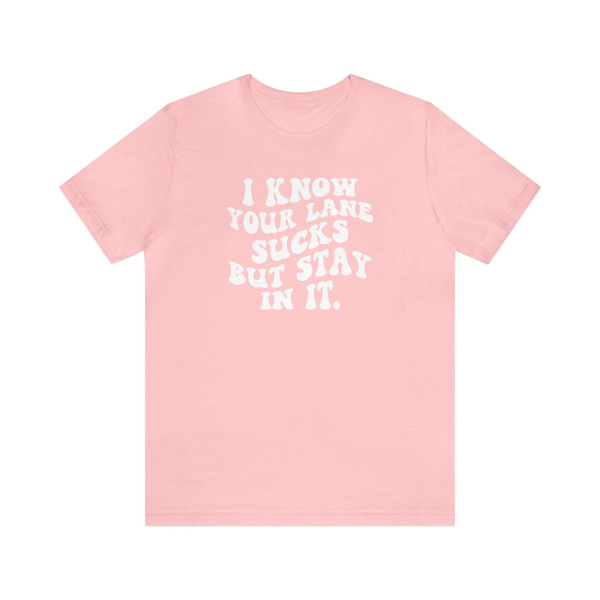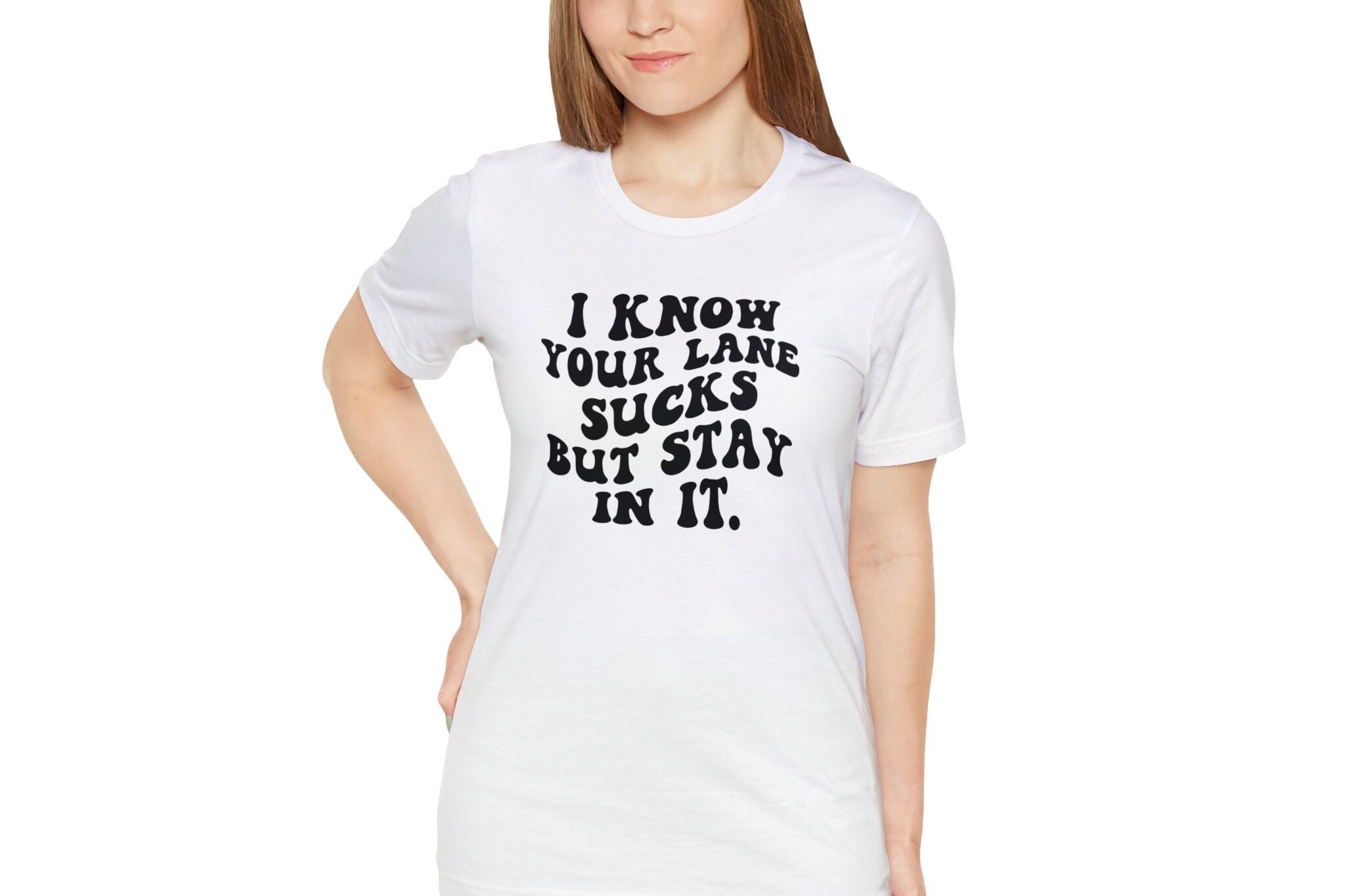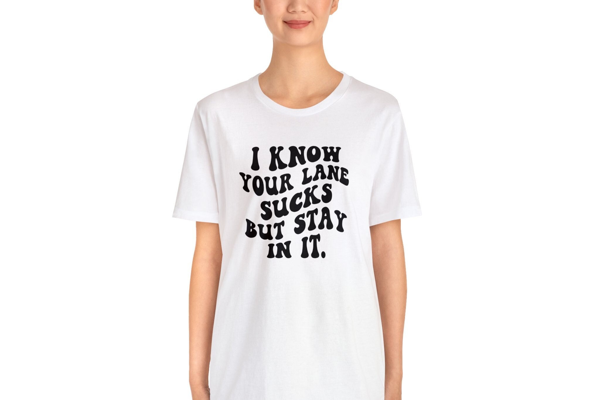Introducing our Stay In Your Lane T-shirt, the epitome of simple, cute, and snappy fashion! Designed with a focus on effortless style, this t-shirt is perfect for those who appreciate clean and minimalist aesthetics. This classic unisex jersey short sleeve tee fits like a well-loved favorite. Soft cotton and quality print make users fall in love with it over and over again. These t-shirts have-ribbed knit collars to bolster shaping. The shoulders are tapered for a better fit over time. Dual side seams hold the garment's shape for longer. .: Made with 100% Airlume combed and ring-spun cotton, a lightweight fabric (4.2 oz/yd² (142 g/m²)) that is easy to layer, breathable. Perfect for active and leisure wear. .: The retail fit that is perfect for casual and semi-formal settings. The crew neckline adds a classic, neat style that's perfect for accessorizing. .: Bella+Canvas manufactures all its products in the US and internationally in humane, no-sweat-shop, sustainable way and is part of the Fair Labor Association as well as Platinum WRAP certified. .: The tear-away label minimizes skin irritations. .: Fabric blends: Ash and Heather Prism colors - 99% Airlume combed and ring-spun cotton, 1% polyester; Heather colors - 52% cotton, 48% polyester; Athletic Heather and Black Heather - 90% cotton, 10% polyester.