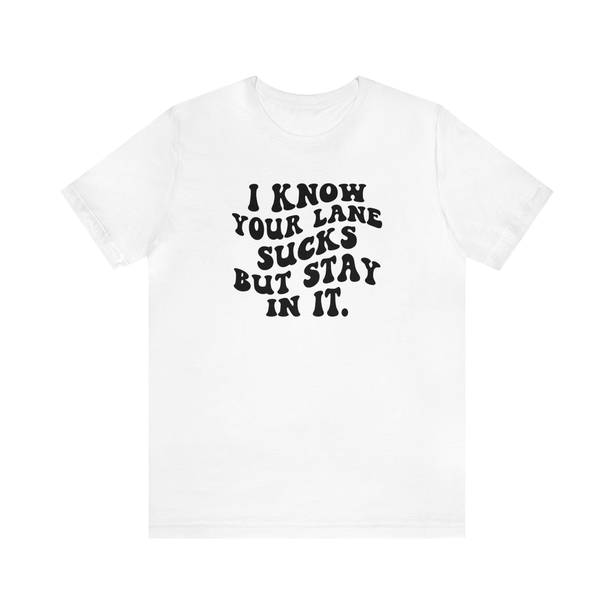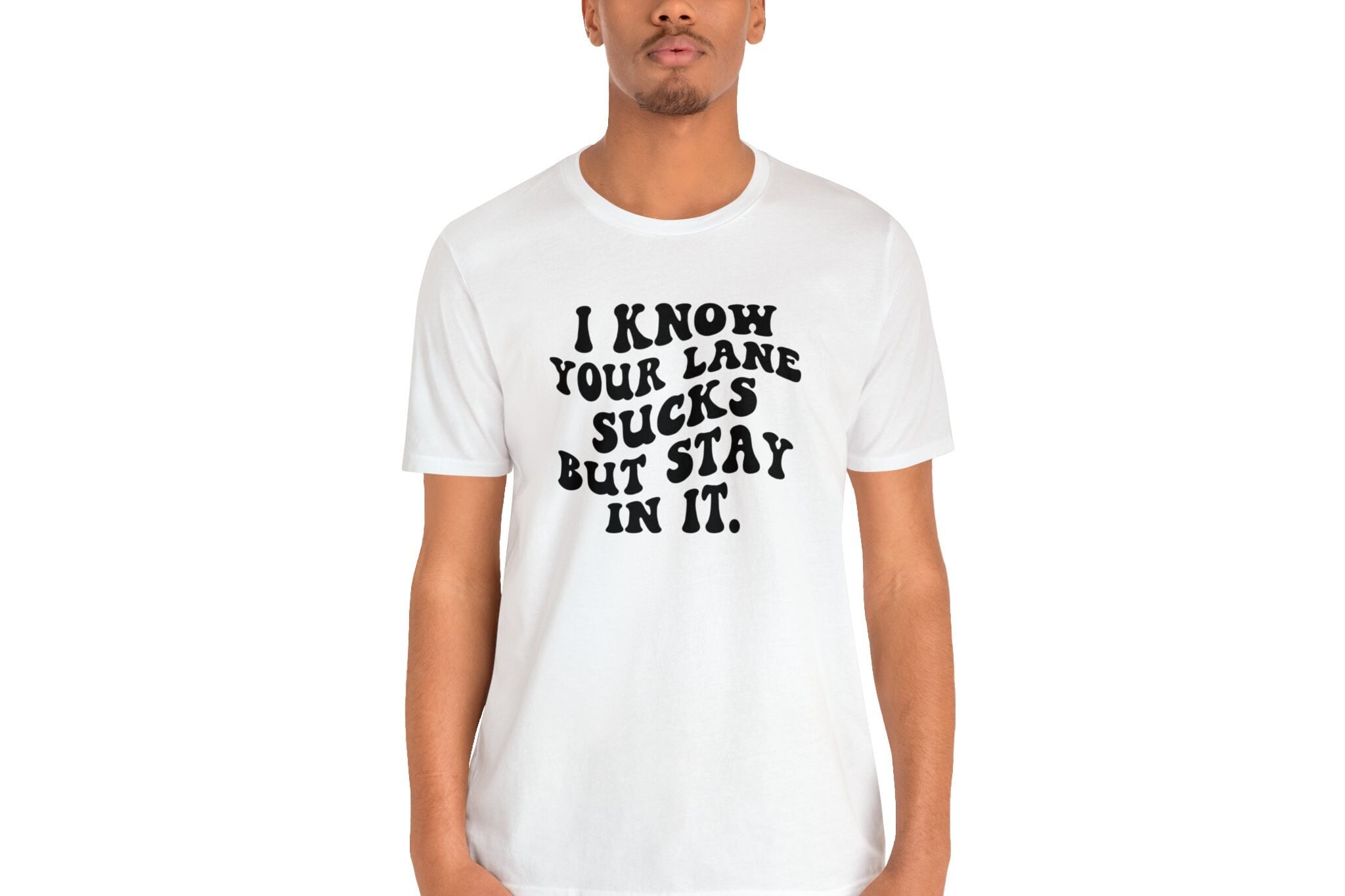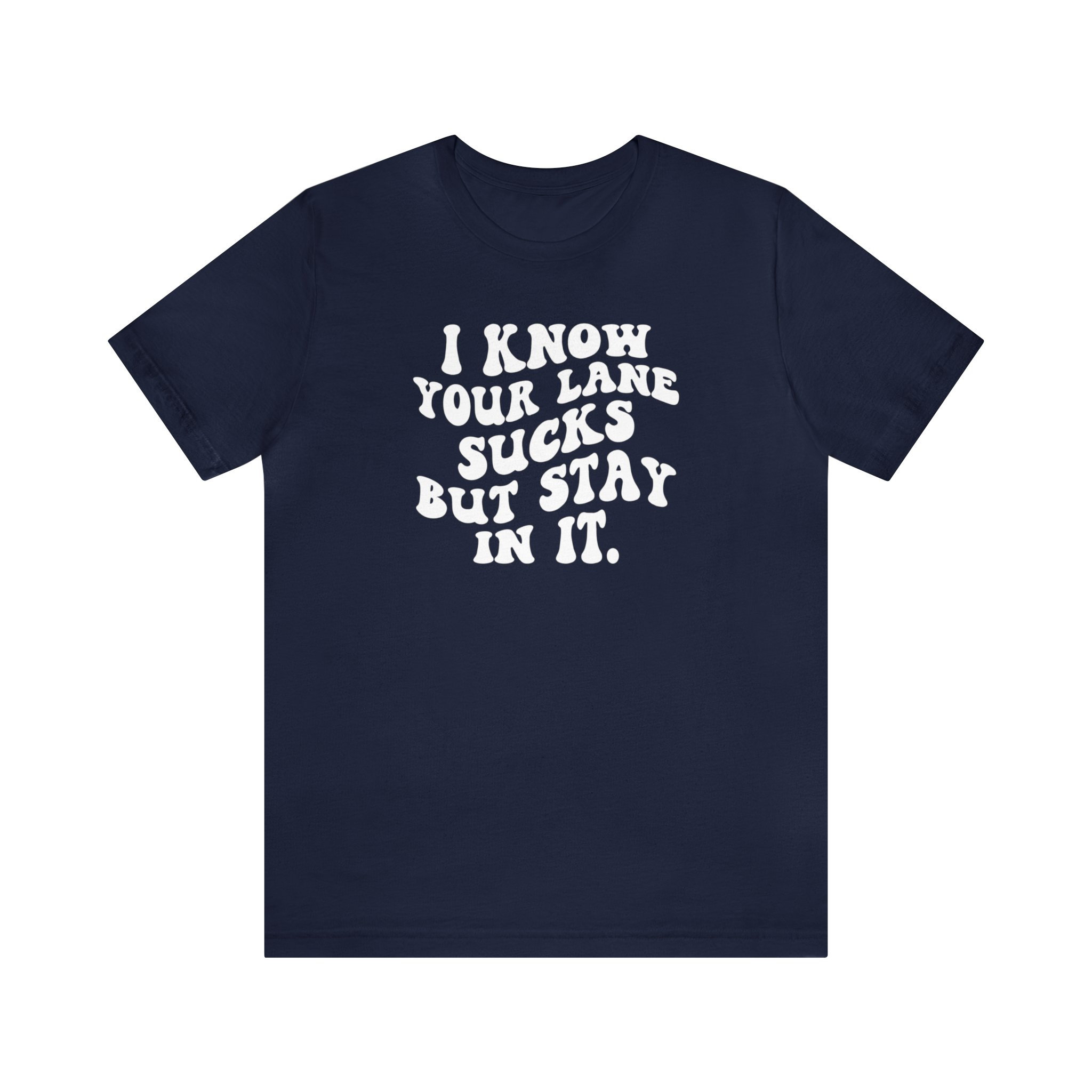 Introducing our Stay In Your Lane T-shirt, the epitome of simple, cute, and snappy fashion! Designed with a focus on effortless style, this t-shirt is perfect for those who appreciate clean and minimalist aesthetics. This classic unisex jersey short sleeve tee fits like a well-loved favorite. Soft cotton and quality print make users fall in love with it over and over again. These t-shirts have-ribbed knit collars to bolster shaping. The shoulders are tapered for a better fit over time. Dual side seams hold the garment's shape for longer. .: Made with 100% Airlume combed and ring-spun cotton, a lightweight fabric (4.2 oz/yd² (142 g/m²)) that is easy to layer, breathable. Perfect for active and leisure wear. .: The retail fit that is perfect for casual and semi-formal settings. The crew neckline adds a classic, neat style that's perfect for accessorizing. .: Bella+Canvas manufactures all its products in the US and internationally in humane, no-sweat-shop, sustainable way and is part of the Fair Labor Association as well as Platinum WRAP certified. .: The tear-away label minimizes skin irritations. .: Fabric blends: Ash and Heather Prism colors - 99% Airlume combed and ring-spun cotton, 1% polyester; Heather colors - 52% cotton, 48% polyester; Athletic Heather and Black Heather - 90% cotton, 10% polyester.