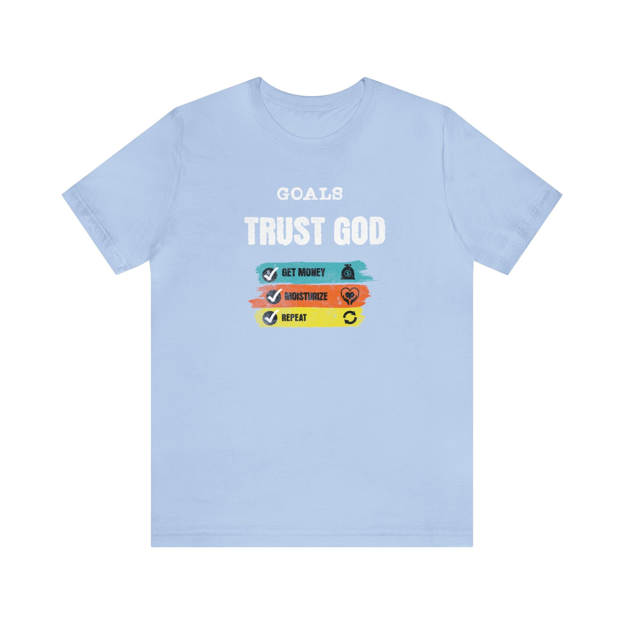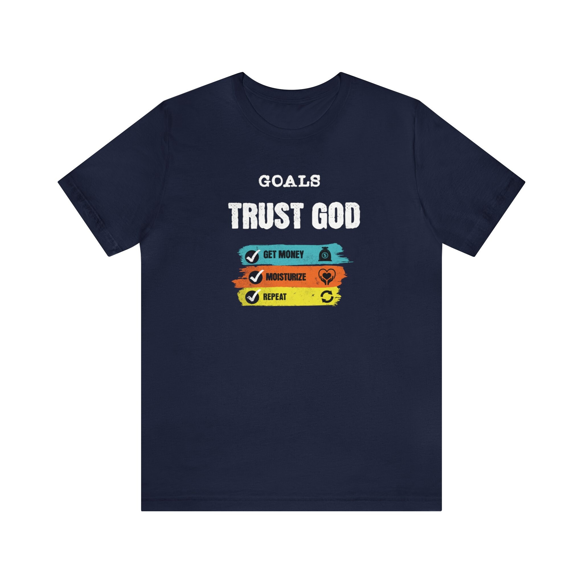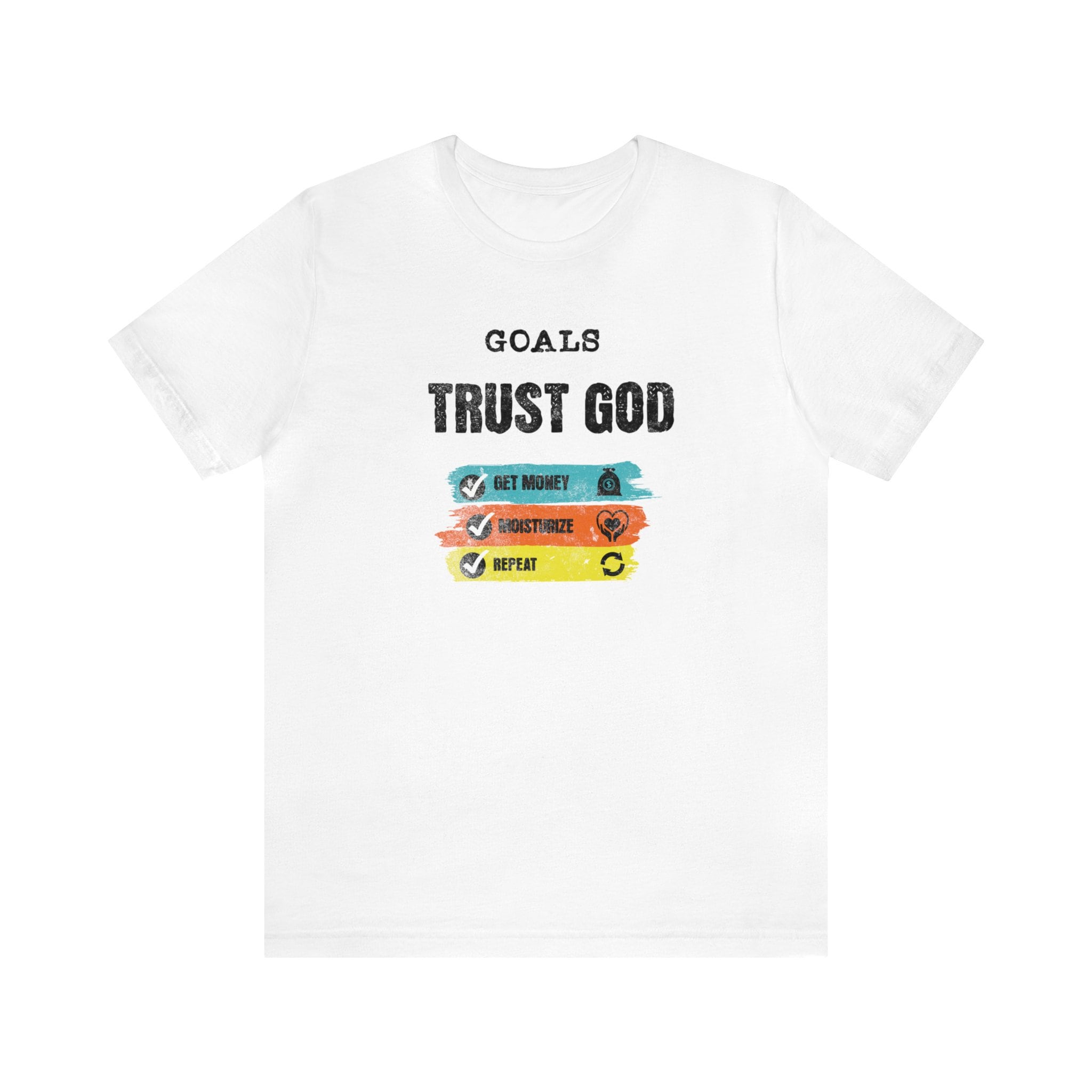 Introducing our brand new Trust God Checklist T-Shirt! This t-shirt is not only a fashion statement, but also a reminder to trust in a higher power.This classic unisex jersey short sleeve tee fits like a well-loved favorite. Soft cotton and quality print make users fall in love with it over and over again. These t-shirts have-ribbed knit collars to bolster shaping. The shoulders are tapered for a better fit over time. Dual side seams hold the garment's shape for longer. .: Made with 100% Airlume combed and ring-spun cotton, a lightweight fabric (4.2 oz/yd² (142 g/m²)) that is easy to layer, breathable. Perfect for active and leisure wear. .: The retail fit that is perfect for casual and semi-formal settings. The crew neckline adds a classic, neat style that's perfect for accessorizing. .: Bella+Canvas manufactures all its products in the US and internationally in humane, no-sweat-shop, sustainable way and is part of the Fair Labor Association as well as Platinum WRAP certified. .: The tear-away label minimizes skin irritations. .: Fabric blends: Ash and Heather Prism colors - 99% Airlume combed and ring-spun cotton, 1% polyester; Heather colors - 52% cotton, 48% polyester; Athletic Heather and Black Heather - 90% cotton, 10% polyester.
