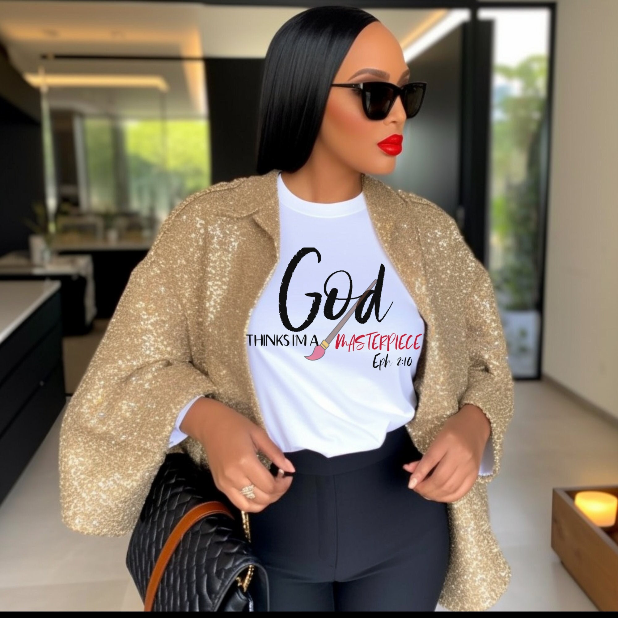Introducing our God Thinks I'm a Masterpiece T-Shirt, the perfect blend of inspiration, humor, and faith. This religious shirt is designed to uplift your spirits and spread positivity wherever you go.This classic unisex jersey short sleeve tee fits like a well-loved favorite. The centerpiece of this tee is the bold and eye-catching graphic print that reads "God Thinks I'm a Masterpiece". It serves as a reminder that we are all unique and special in the eyes of the divine. Soft cotton and quality print make users fall in love with it over and over again. These t-shirts have-ribbed knit collars to bolster shaping. The shoulders are tapered for a better fit over time. Dual side seams hold the garment's shape for longer. .: Made with 100% Airlume combed and ring-spun cotton, a lightweight fabric (4.2 oz/yd² (142 g/m²)) that is easy to layer, breathable. Perfect for active and leisure wear. .: The retail fit that is perfect for casual and semi-formal settings. The crew neckline adds a classic, neat style that's perfect for accessorizing. .: Bella+Canvas manufactures all its products in the US and internationally in humane, no-sweat-shop, sustainable way and is part of the Fair Labor Association as well as Platinum WRAP certified. .: The tear-away label minimizes skin irritations. .: Fabric blends: Ash and Heather Prism colors - 99% Airlume combed and ring-spun cotton, 1% polyester; Heather colors - 52% cotton, 48% polyester; Athletic Heather and Black Heather - 90% cotton, 10% polyester.