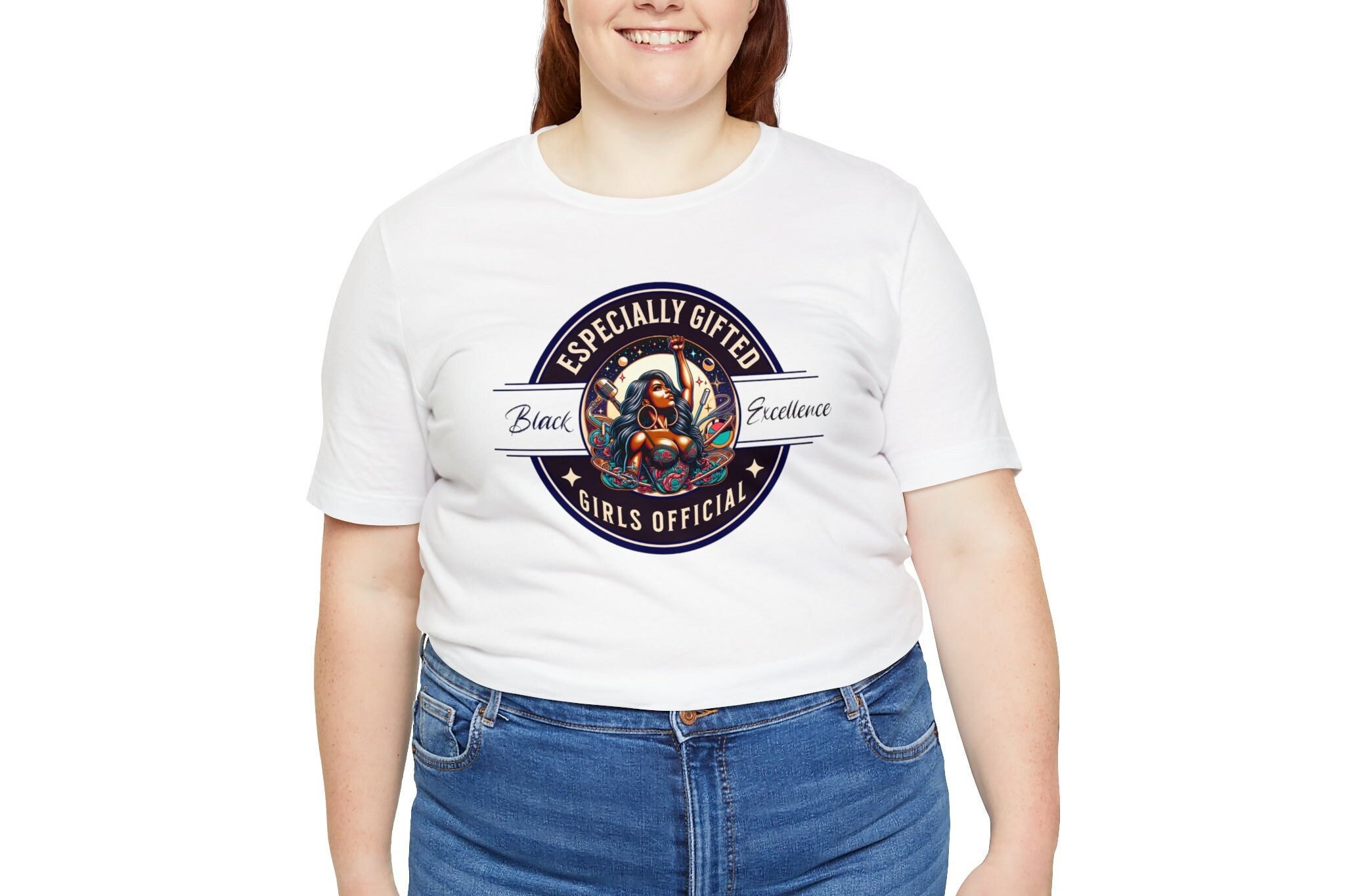 Embrace the essence of empowerment with the Especially Gifted Black Excellence Tee. This lightweight t-shirt not only exudes style but also a powerful statement of pride. This lightweight t-shirt offers a classic fit that combines comfort with style effortlessly. The trendy tee features a modern design that is both eye-catching and versatile, perfect for any occasion. This classic unisex jersey short sleeve tee fits like a well-loved favorite. Soft cotton and quality print make users fall in love with it over and over again. These t-shirts have-ribbed knit collars to bolster shaping. The shoulders are tapered for a better fit over time. Dual side seams hold the garment's shape for longer. .: Made with 100% Airlume combed and ring-spun cotton, a lightweight fabric (4.2 oz/yd² (142 g/m²)) that is easy to layer, breathable. Perfect for active and leisure wear. .: The retail fit that is perfect for casual and semi-formal settings. The crew neckline adds a classic, neat style that's perfect for accessorizing. .: Bella+Canvas manufactures all its products in the US and internationally in humane, no-sweat-shop, sustainable way and is part of the Fair Labor Association as well as Platinum WRAP certified. .: The tear-away label minimizes skin irritations. .: Fabric blends: Ash and Heather Prism colors - 99% Airlume combed and ring-spun cotton, 1% polyester; Heather colors - 52% cotton, 48% polyester; Athletic Heather and Black Heather - 90% cotton, 10% polyester.