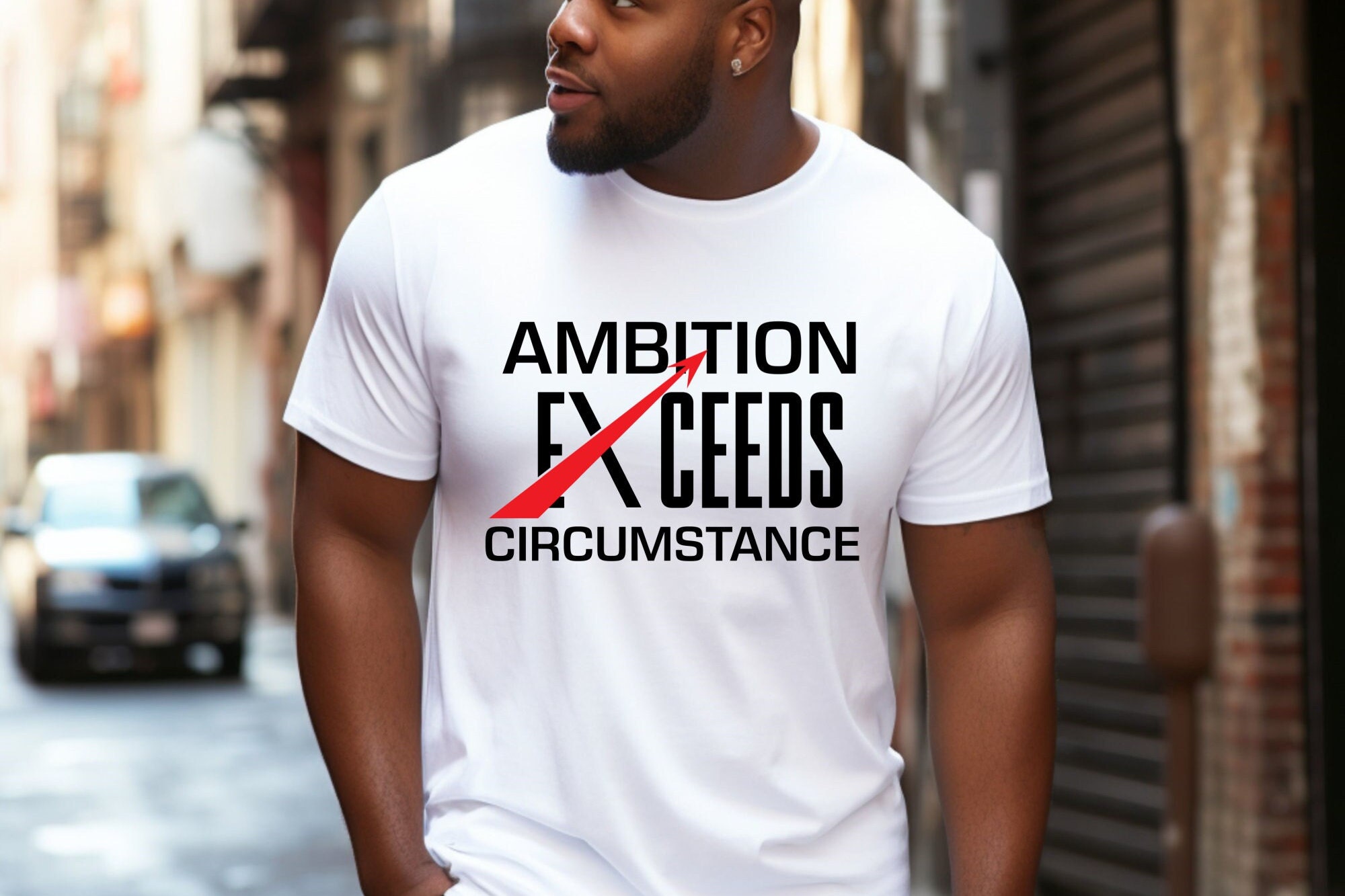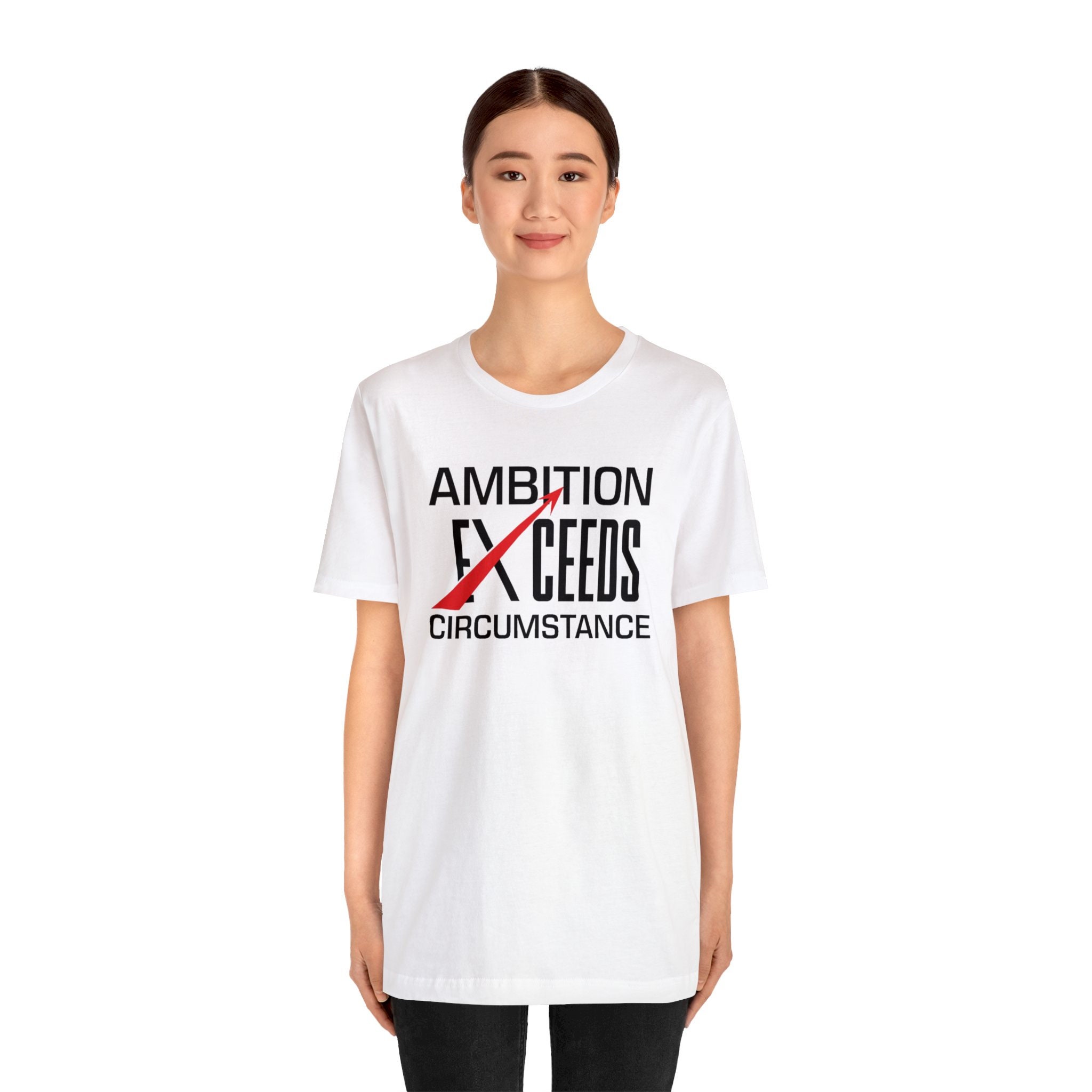Introducing our Ambition Exceeds Circumstance Shirt, a motivational tee designed to inspire and empower. This classic unisex jersey short sleeve tee fits like a well-loved favorite. Soft cotton and quality print make users fall in love with it over and over again. These t-shirts have-ribbed knit collars to bolster shaping. The shoulders are tapered for a better fit over time. Dual side seams hold the garment's shape for longer. .: Made with 100% Airlume combed and ring-spun cotton, a lightweight fabric (4.2 oz/yd² (142 g/m²)) that is easy to layer, breathable. Perfect for active and leisure wear. .: The retail fit that is perfect for casual and semi-formal settings. The crew neckline adds a classic, neat style that's perfect for accessorizing. .: Bella+Canvas manufactures all its products in the US and internationally in humane, no-sweat-shop, sustainable way and is part of the Fair Labor Association as well as Platinum WRAP certified. .: The tear-away label minimizes skin irritations. .: Fabric blends: Ash and Heather Prism colors - 99% Airlume combed and ring-spun cotton, 1% polyester; Heather colors - 52% cotton, 48% polyester; Athletic Heather and Black Heather - 90% cotton, 10% polyester.