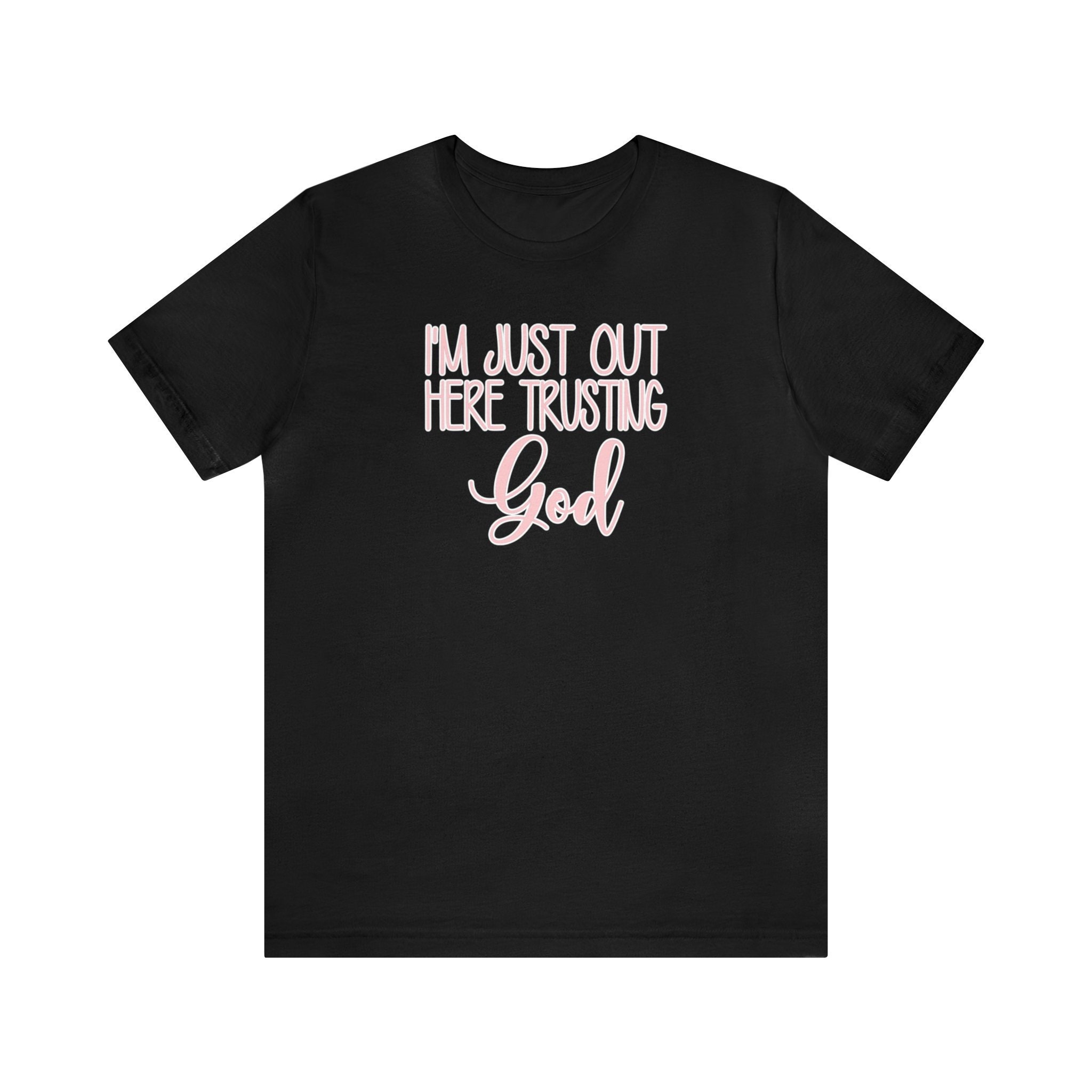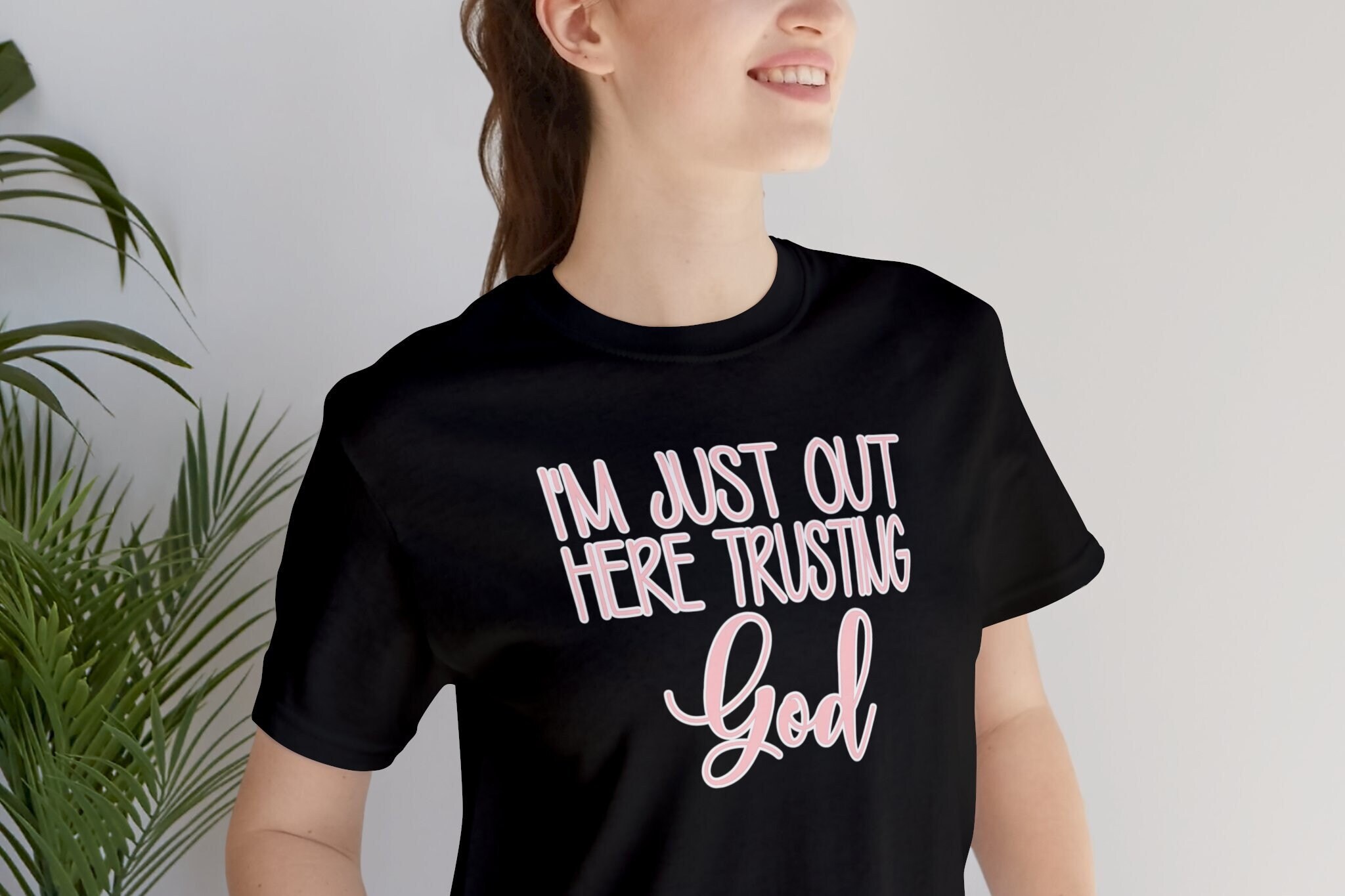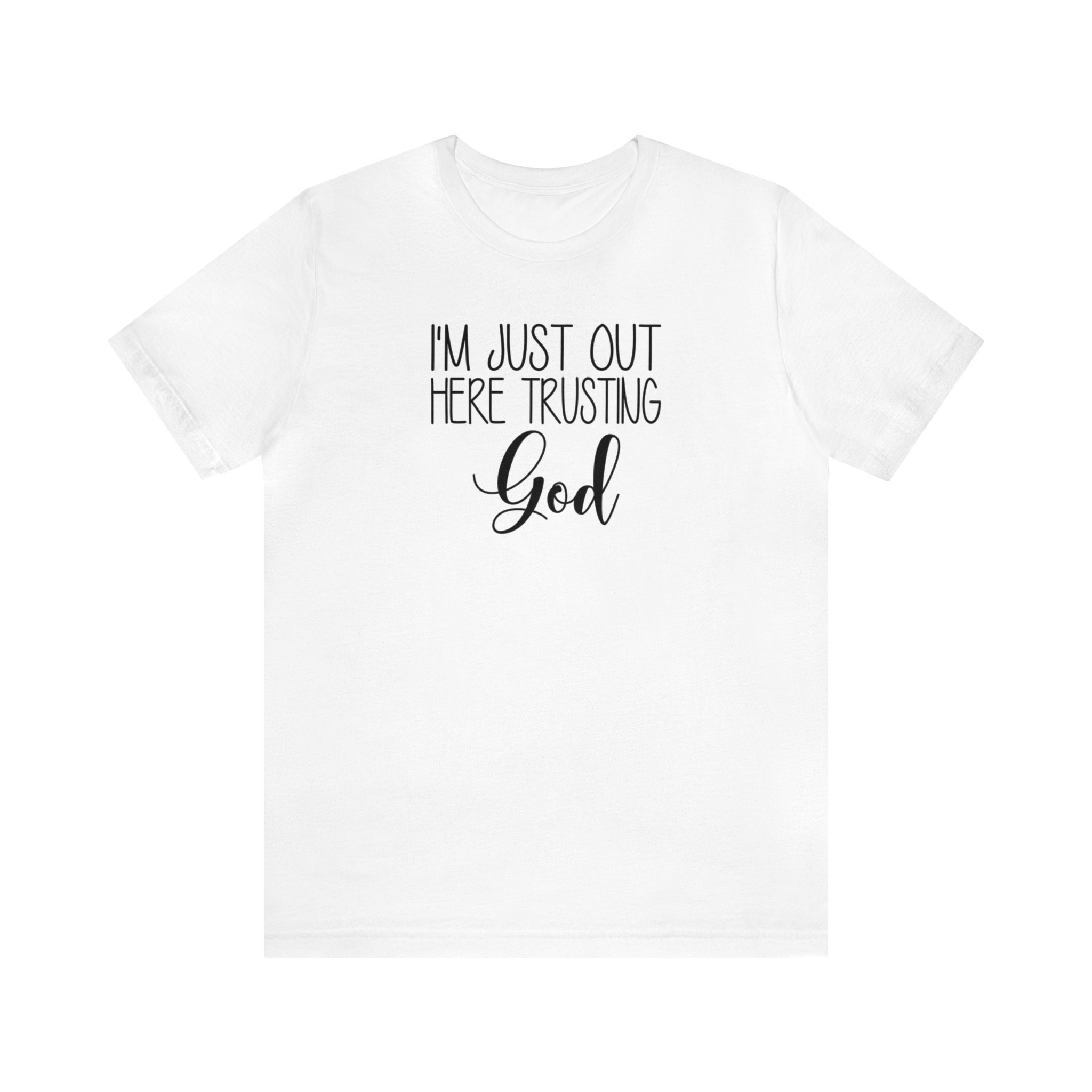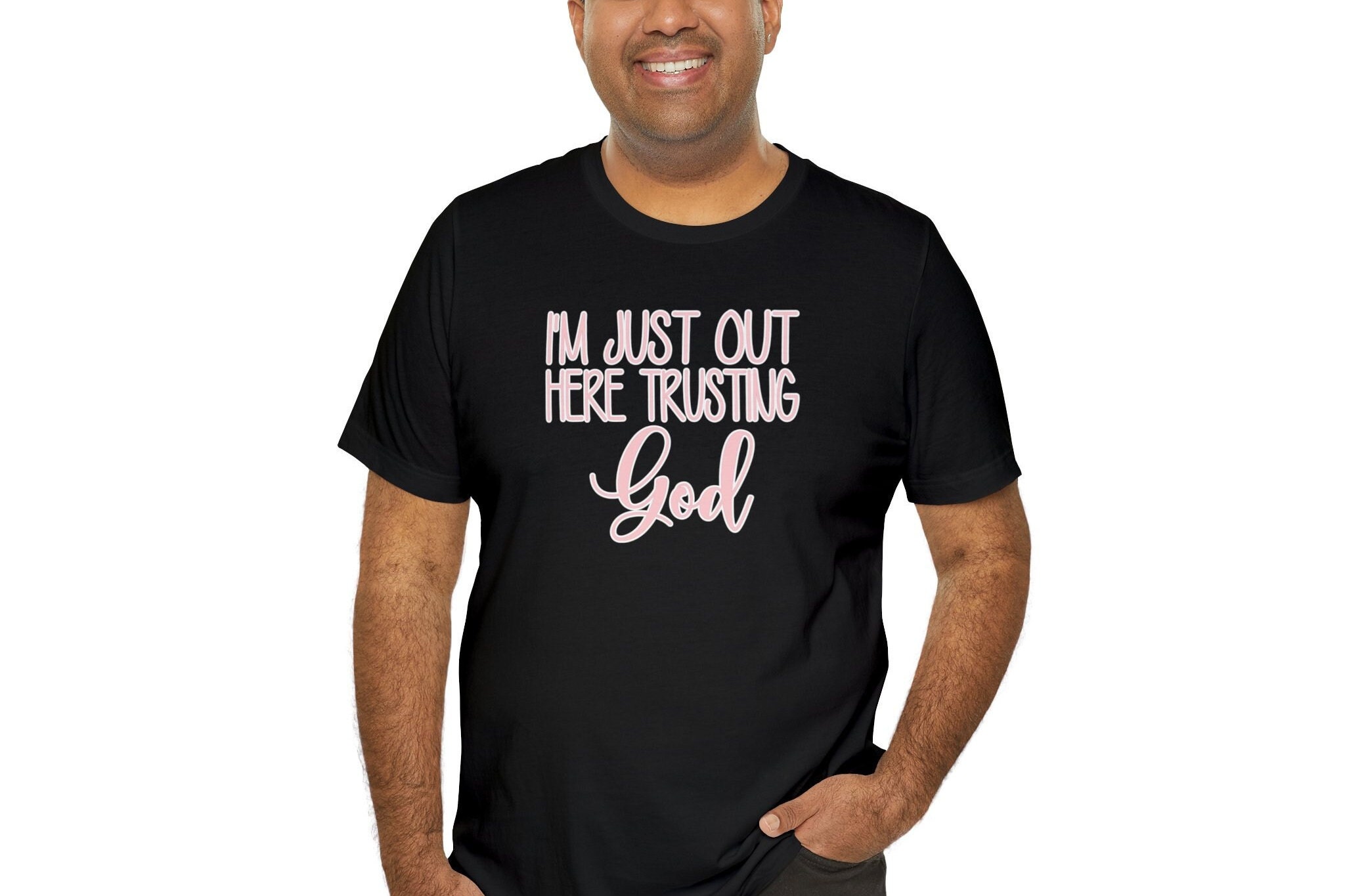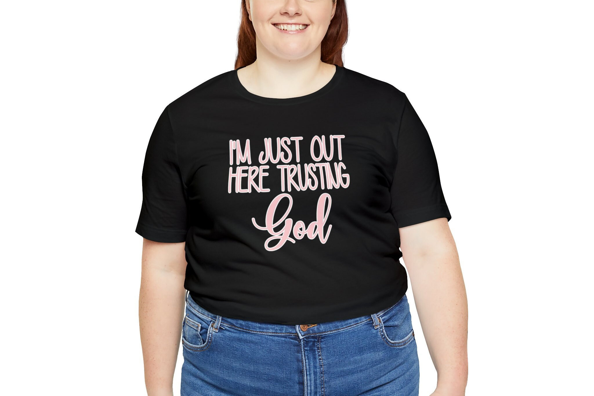 Introducing our latest arrival, the trust-inspired "I'm just out here just trusting God" t-shirt. Crafted with care, this t-shirt is designed to inspire and empower you as you navigate through life's journey. The combination of the bold and eye-catching text, "I'm just out here just trusting God," and the soft and comfortable fabric makes this t-shirt a must-have for those seeking to express their faith in style. This classic unisex jersey short sleeve tee fits like a well-loved favorite. Soft cotton and quality print make users fall in love with it over and over again. These t-shirts have-ribbed knit collars to bolster shaping. The shoulders are tapered for a better fit over time. Dual side seams hold the garment's shape for longer. .: Made with 100% Airlume combed and ring-spun cotton, a lightweight fabric (4.2 oz/yd² (142 g/m²)) that is easy to layer, breathable. Perfect for active and leisure wear. .: The retail fit that is perfect for casual and semi-formal settings. The crew neckline adds a classic, neat style that's perfect for accessorizing. .: Bella+Canvas manufactures all its products in the US and internationally in humane, no-sweat-shop, sustainable way and is part of the Fair Labor Association as well as Platinum WRAP certified. .: The tear-away label minimizes skin irritations. .: Fabric blends: Ash and Heather Prism colors - 99% Airlume combed and ring-spun cotton, 1% polyester; Heather colors - 52% cotton, 48% polyester; Athletic Heather and Black Heather - 90% cotton, 10% polyester.