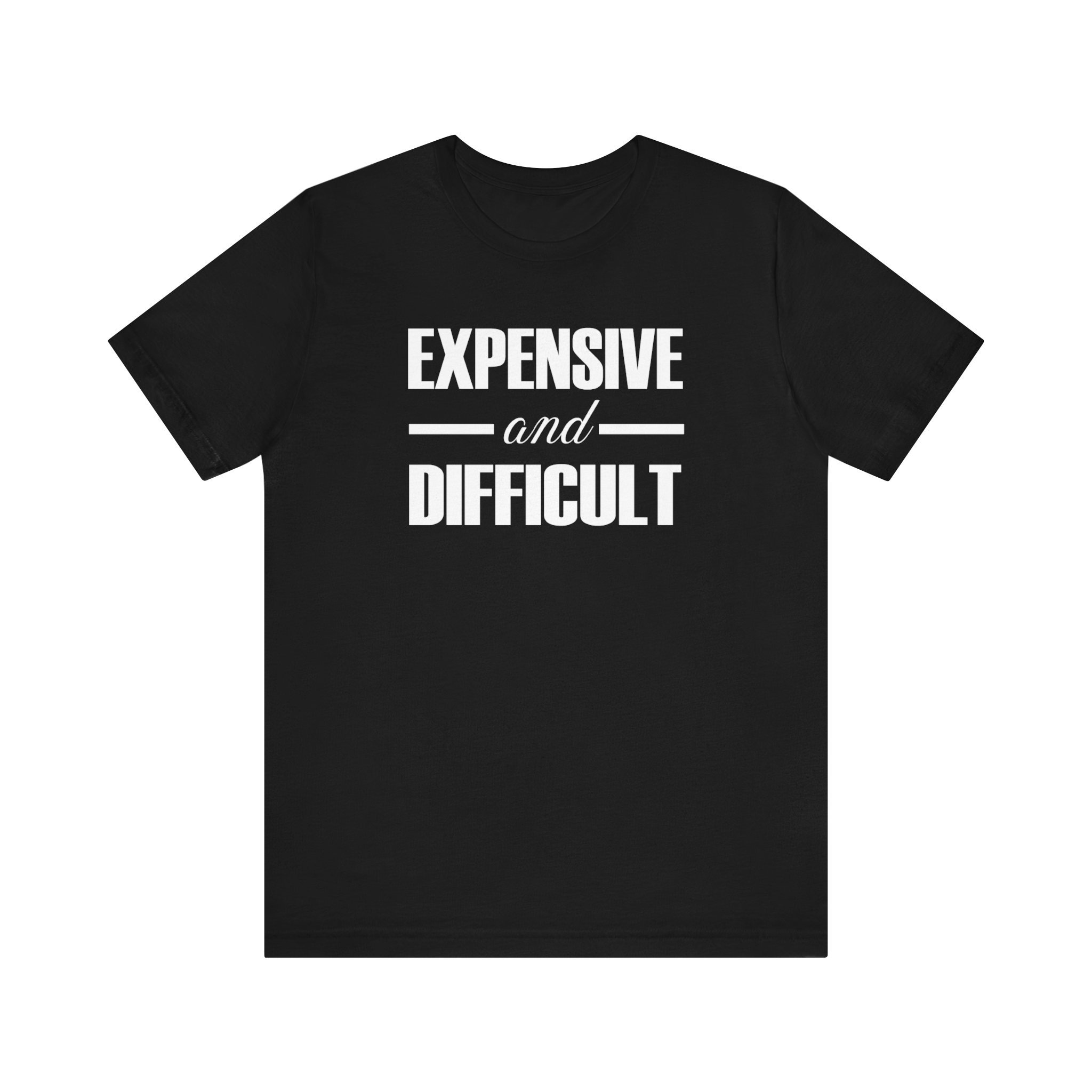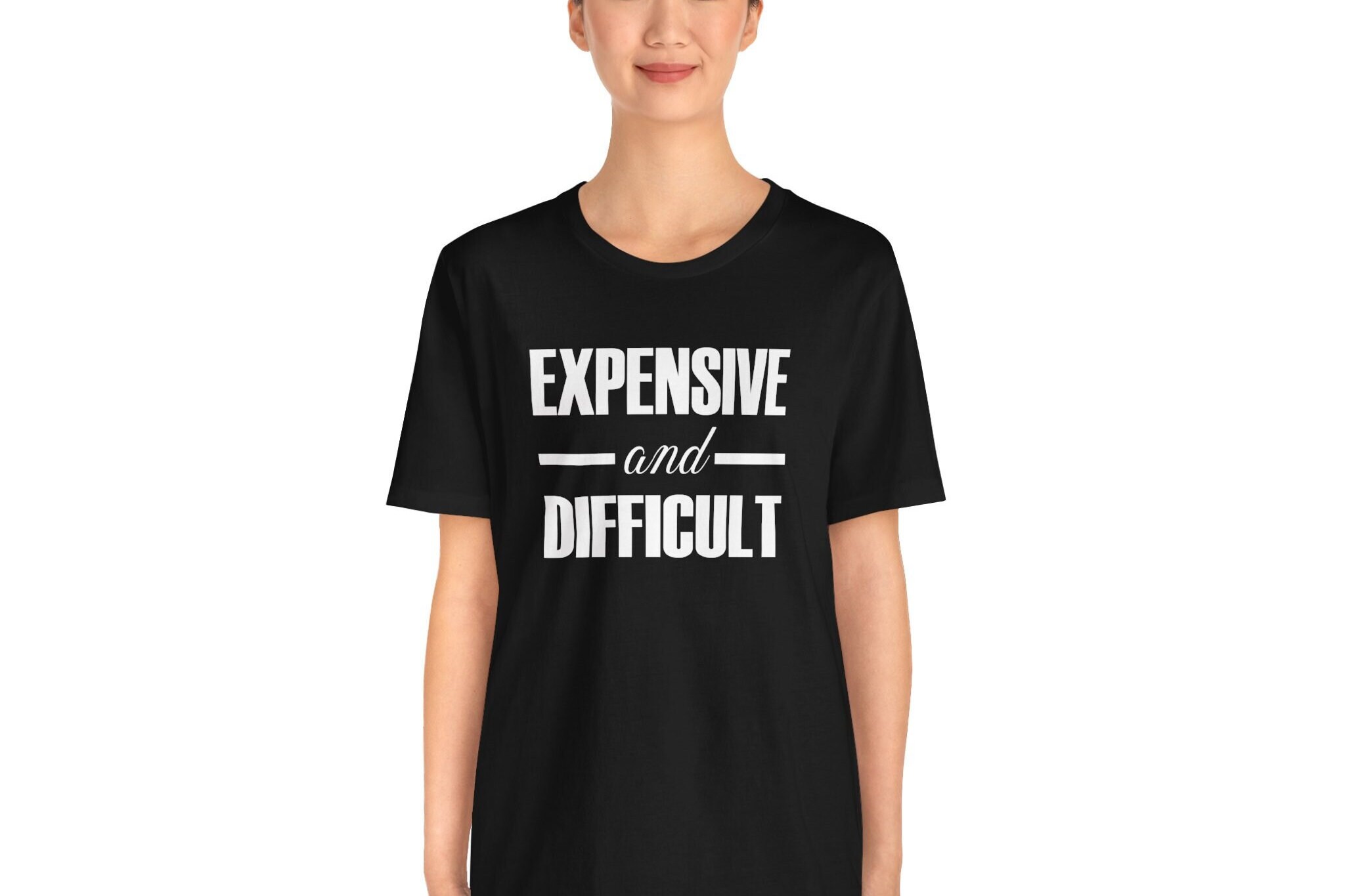 Our premium "Expensive and Difficult" t-shirt elevates your style effortlessly. Wearing this t-shirt isn't just about fashion; it's a powerful affirmation of self-assurance and positivity dedication. Our "Expensive and Difficult" Unisex jersey short sleeve tee fits like a well-loved favorite and Soft cotton and quality print make users fall in love with it over and over again. These t-shirts have-ribbed knit collars to bolster shaping. The shoulders are tapered for a better fit over time. Dual side seams hold the garment's shape for longer. .: Made with 100% Airlume combed and ring-spun cotton, a lightweight fabric (4.2 oz/yd² (142 g/m²)) that is easy to layer, breathable. Perfect for active and leisure wear. .: The retail fit that is perfect for casual and semi-formal settings. The crew neckline adds a classic, neat style that's perfect for accessorizing. .: Bella+Canvas manufactures all its products in the US and internationally in humane, no-sweat-shop, sustainable way and is part of the Fair Labor Association as well as Platinum WRAP certified. .: The tear-away label minimizes skin irritations. .: Fabric blends: Ash and Heather Prism colors - 99% Airlume combed and ring-spun cotton, 1% polyester; Heather colors - 52% cotton, 48% polyester; Athletic Heather and Black Heather - 90% cotton, 10% polyester.
