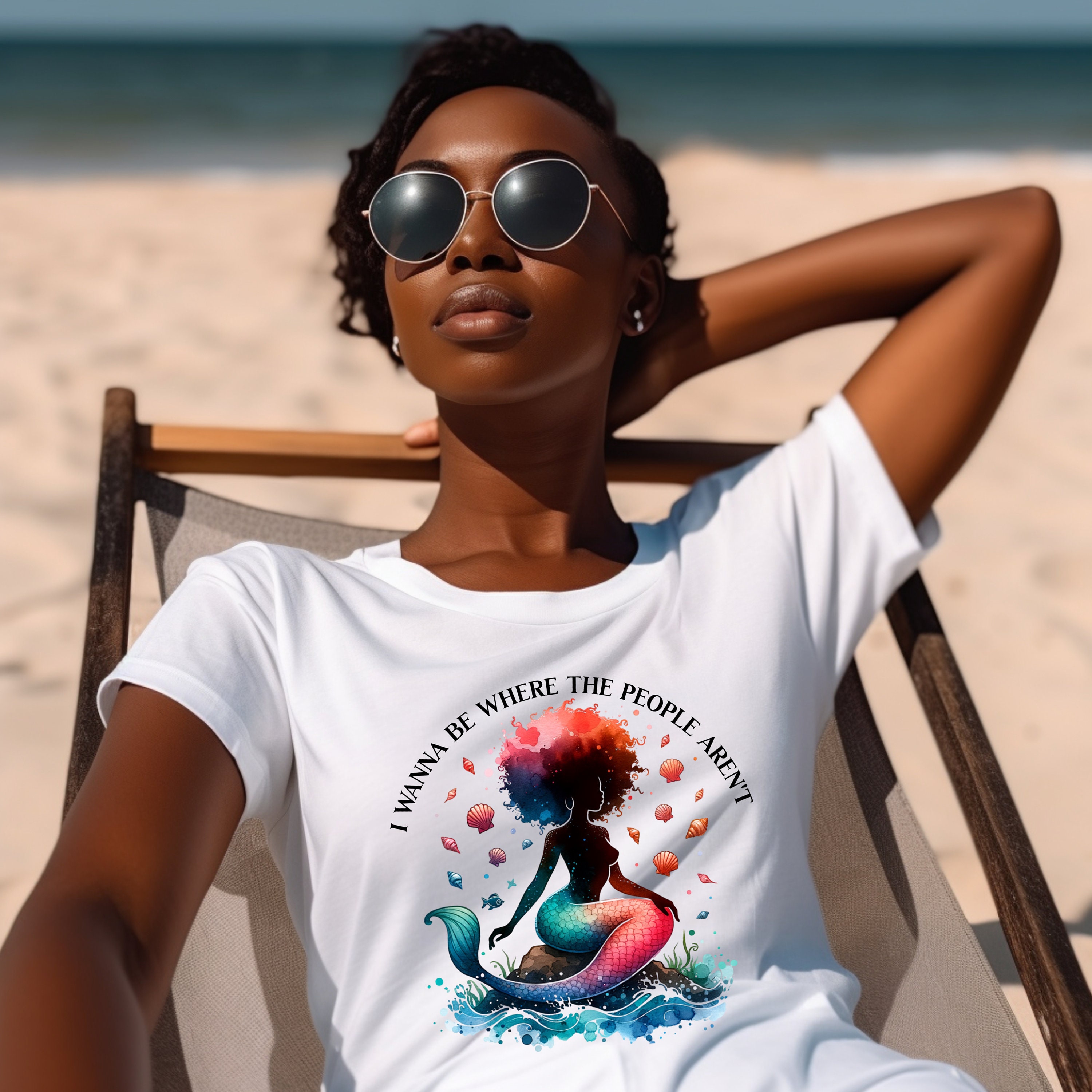 Indulge your inner introvert with our "I Wanna Be Where The People Aren't" Mermaid T-shirt, a perfect blend of humor and sarcasm. This tee is not just apparel; it's a statement piece for those who appreciate witty charm. The design captures the essence of seeking solitude in a playful and relatable way. This classic unisex jersey short sleeve tee fits like a well-loved favorite. Soft cotton and quality print make users fall in love with it over and over again. These t-shirts have-ribbed knit collars to bolster shaping. The shoulders are tapered for a better fit over time. Dual side seams hold the garment's shape for longer. .: Made with 100% Airlume combed and ring-spun cotton, a lightweight fabric (4.2 oz/yd² (142 g/m²)) that is easy to layer, breathable. Perfect for active and leisure wear. .: The retail fit that is perfect for casual and semi-formal settings. The crew neckline adds a classic, neat style that's perfect for accessorizing. .: Bella+Canvas manufactures all its products in the US and internationally in humane, no-sweat-shop, sustainable way and is part of the Fair Labor Association as well as Platinum WRAP certified. .: The tear-away label minimizes skin irritations. .: Fabric blends: Ash and Heather Prism colors - 99% Airlume combed and ring-spun cotton, 1% polyester; Heather and Solid Blend colors - 52% cotton, 48% polyester; Athletic Heather and Black Heather - 90% cotton, 10% polyester.
