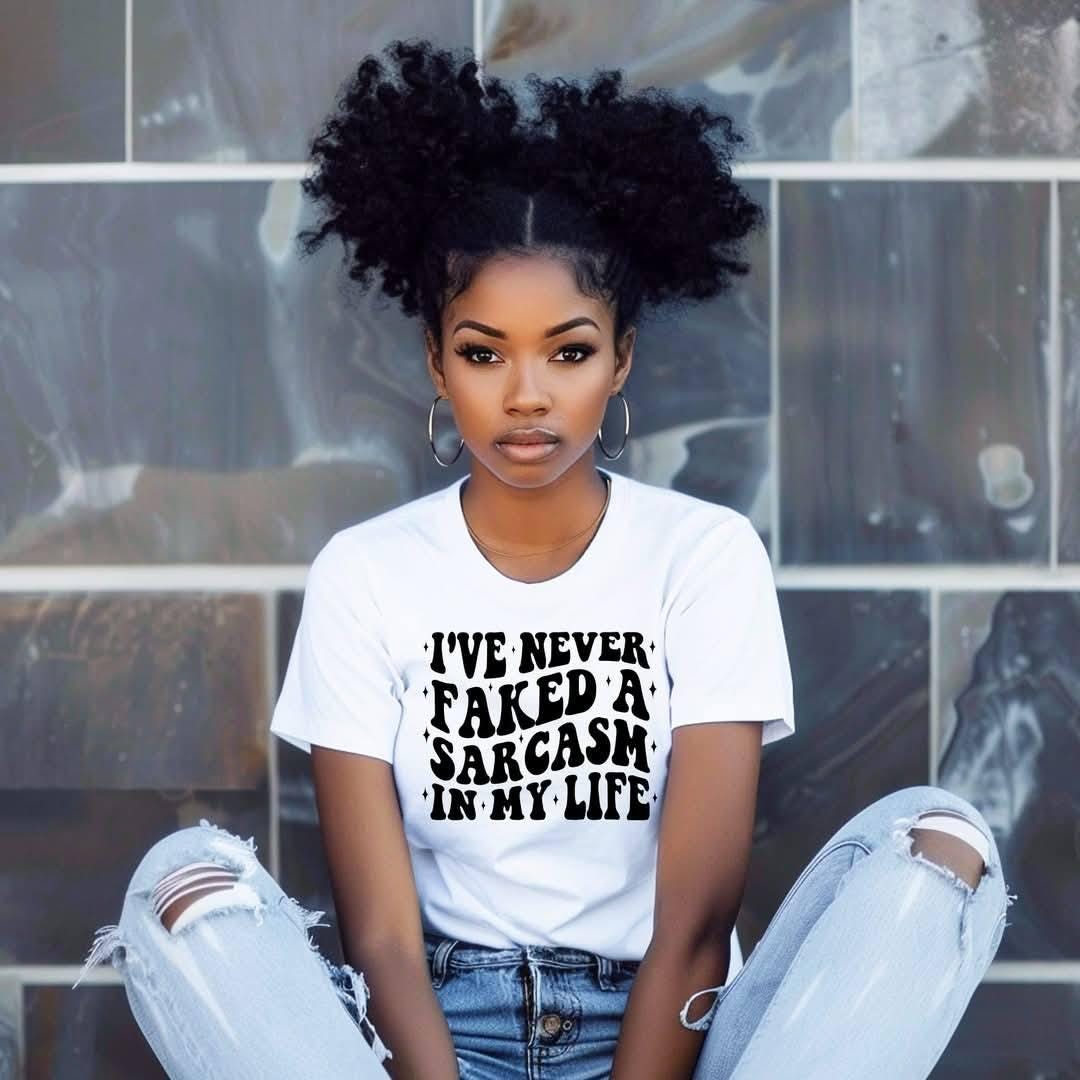 Funny t-shirt about faking sarcasm, perfect for those with a witty sense of humor. Ideal for casual wear or as a conversation starter. Relevant for birthdays, casual Fridays, and everyday occasions.