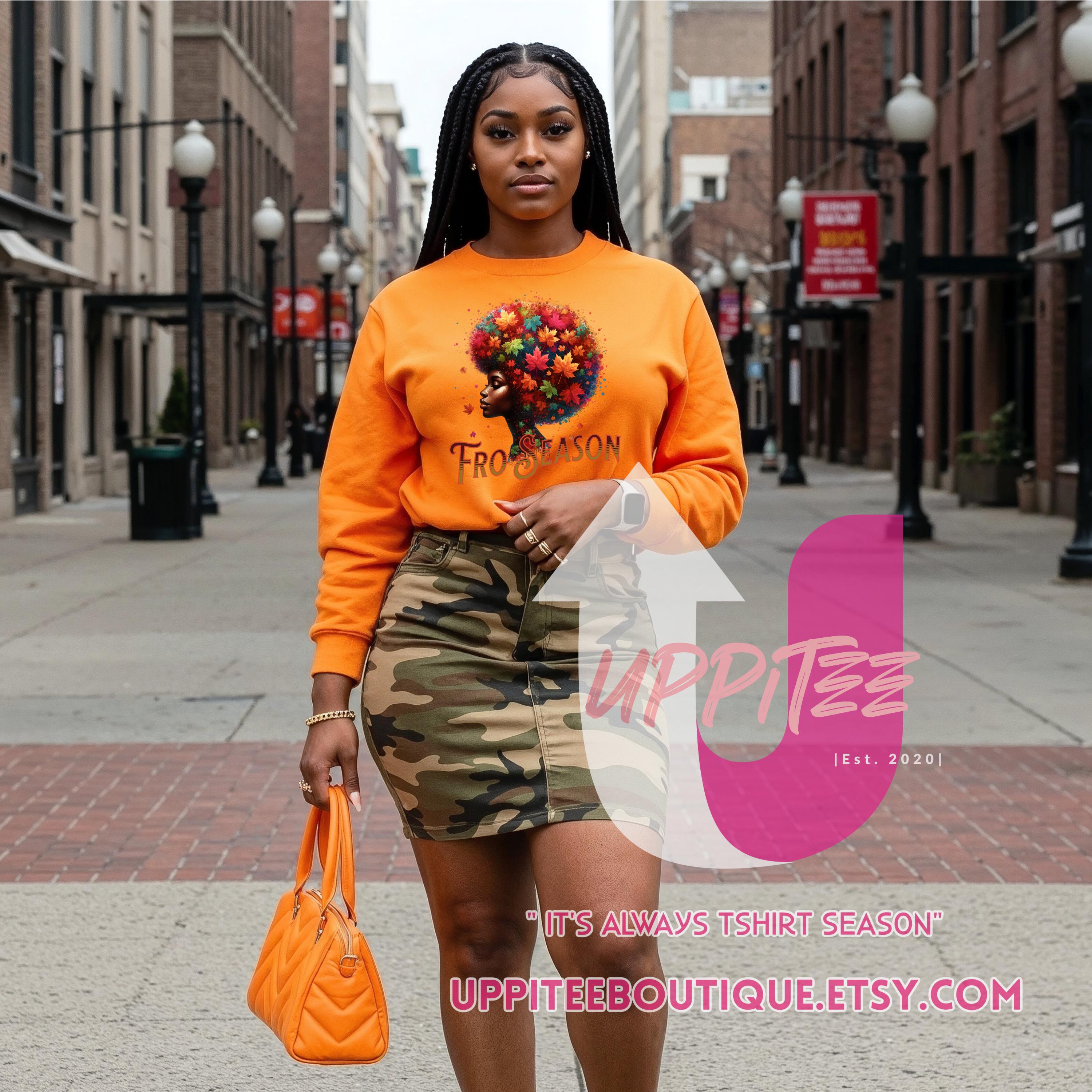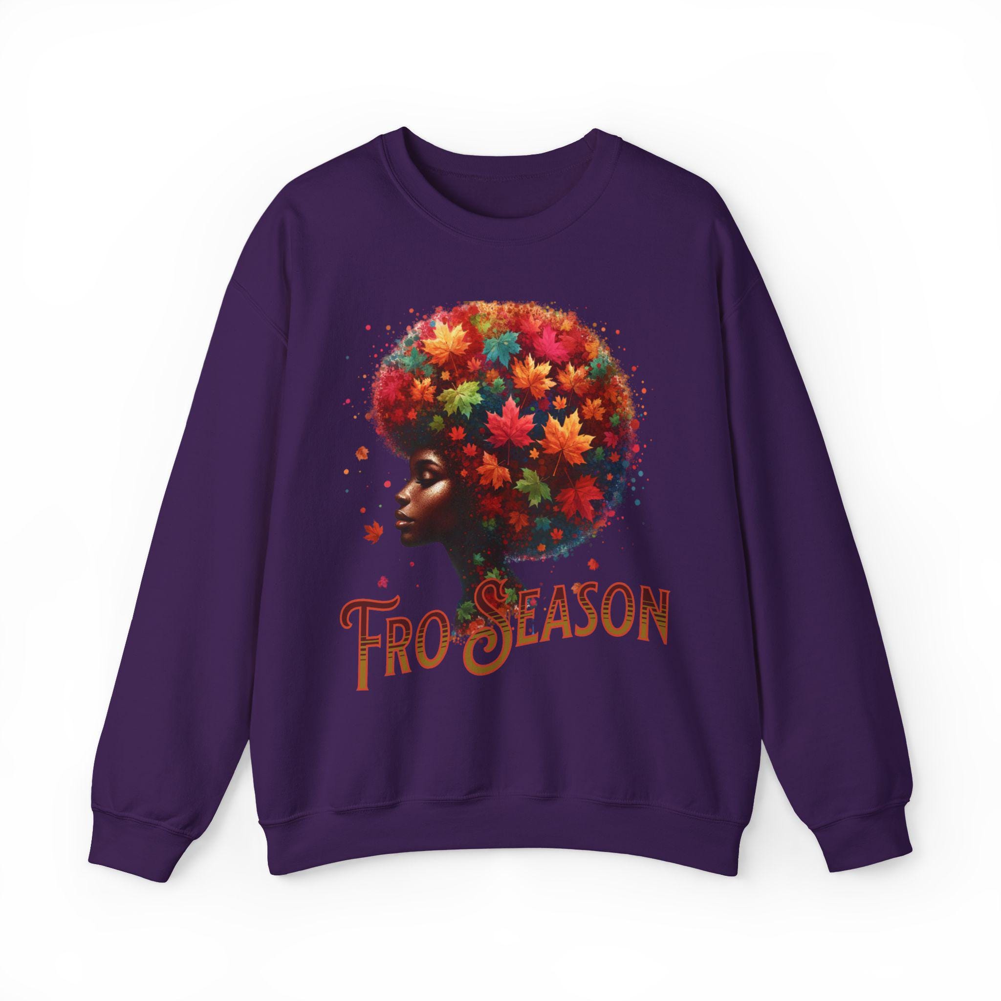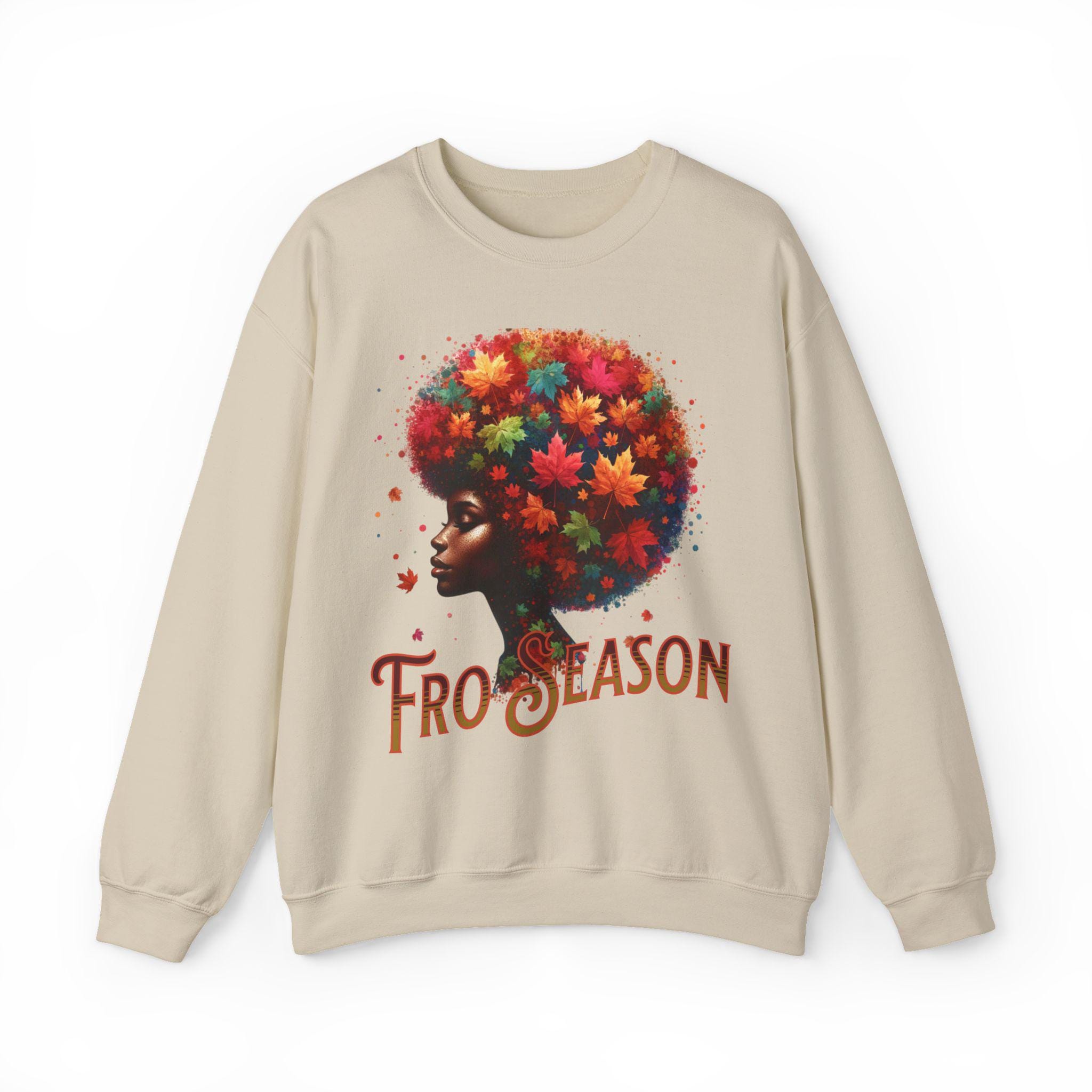 Cozy unisex sweatshirt featuring an autumn theme with an African woman profile, complete with a decorated afro in fall colors and leaves. Perfect for those looking for a comfortable and stylish piece for the colder months. Ideal for adults seeking a unique and culturally-inspired design. Relevant for autumn, Thanksgiving, and other fall celebrations.